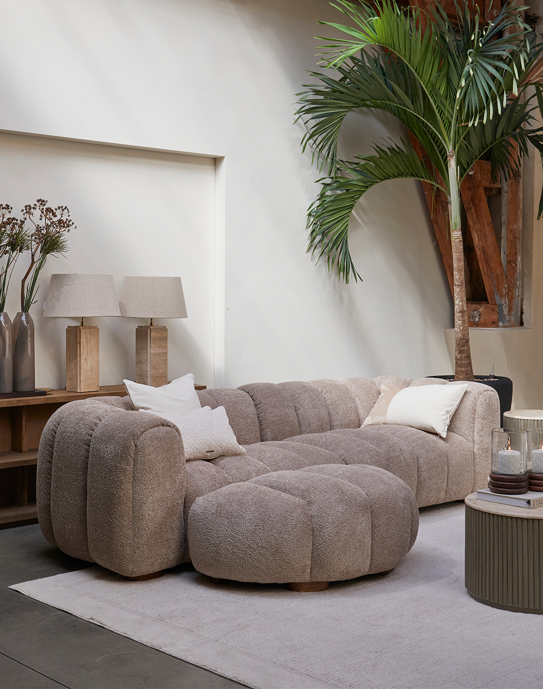 Das Vicenza Sofa ist ein absoluter Blickfang für Ihr Wohnzimmer. Das zeitgemäße Design in Kombination mit dem luxuriösen, weichen Stoff verleiht Ihrem Interieur eine warme, elegante Note. Mit seiner tiefen, bequemen Sitzfläche ist dieses Sofa ideal, um sich nach einem langen Tag gemütlich zurückzulehnen, perfekt zum Entspannen oder für gemütliche Abende mit der Familie. Mit dem passenden Fußhocker runden Sie das ultimative Lounge-Feeling ab.