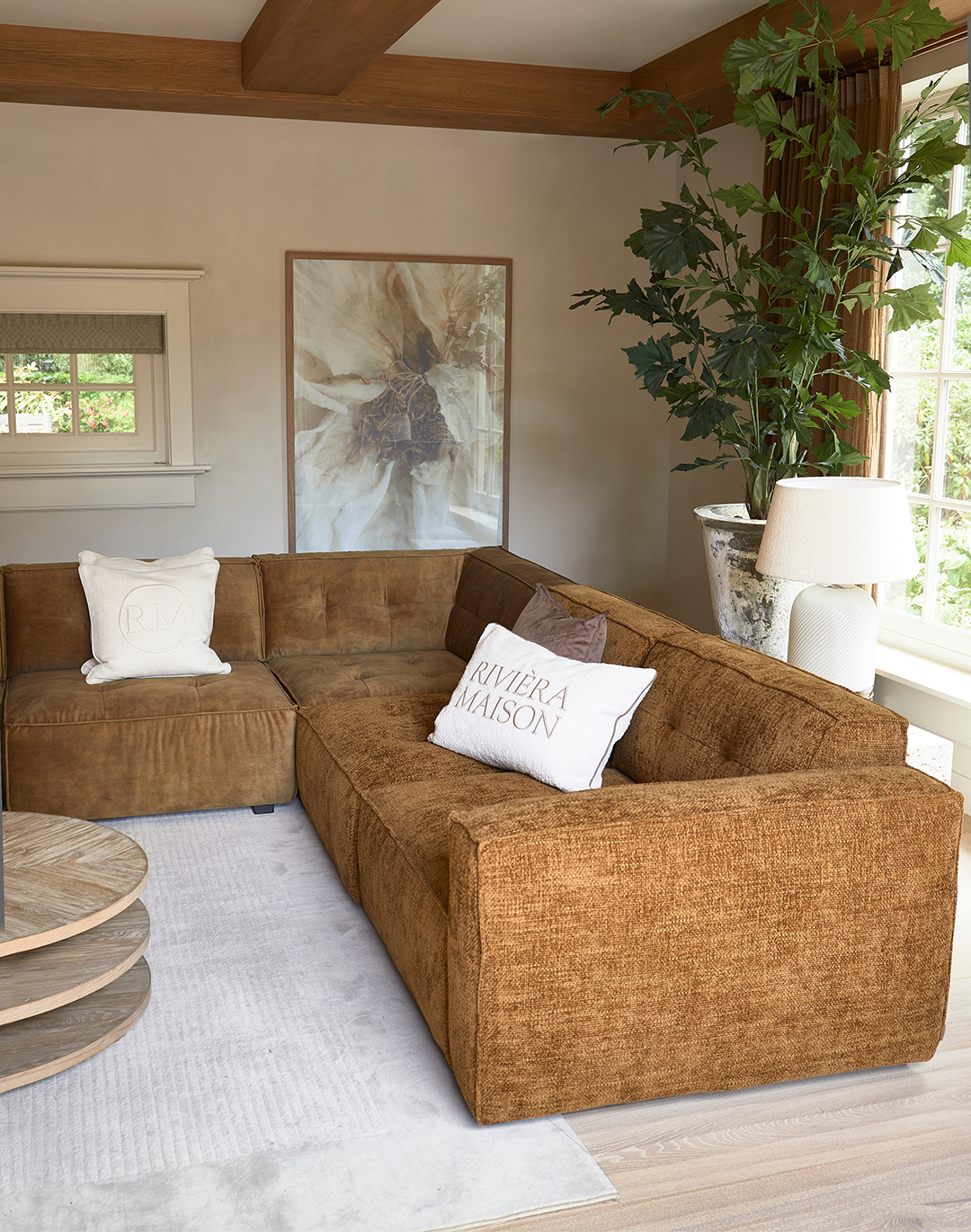The Brandon is available in all fabrics and colours from the University Square collection, except Faux Fur, Poodle Weave and Washed Cotton. The base and legs are made of beech wood. Contact one of our dealers to create your ideal sofa.