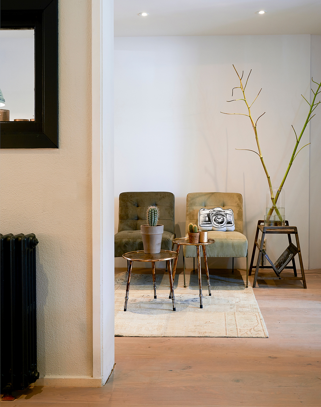De wens: een warme, huiselijke omgeving creëren waar klanten zich direct op hun gemak voelen en graag nog even blijven zitten. In de kapsalon staan comfortabele stoelen en is veel groen verwerkt. Bij iedere spiegel, de balie en de relaxte fauteuils zorgen prachtige planten voor dat complete, uitnodigende thuisgevoel.