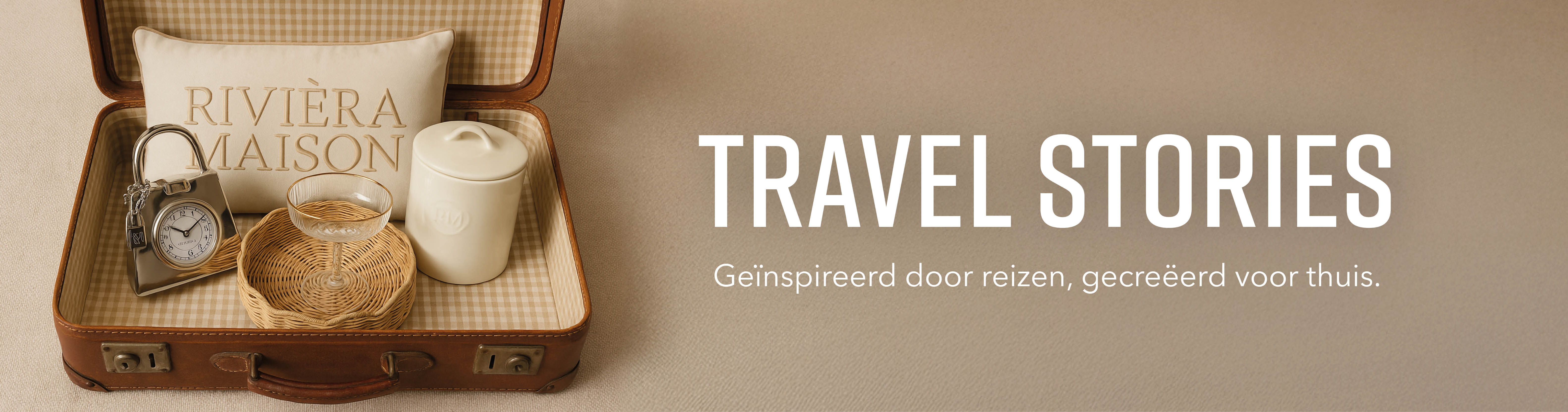 Droom met ons weg naar de mooiste bestemmingen. Stuk voor stuk plekken waar wij ons helemaal in ons element voelen. Laat je inspireren voor de aankomende vakantieperiode óf kies items uit onze collectie die dat gevoel van reizen en ontdekken in huis kunnen brengen. Waan je in een andere wereld met Rivièra Maison, waar elke hoek iets vertelt en elk detail doet denken aan "even weg". Geniet elke dag van dat ene moment, want zoals wij zeggen: “herinneringen blijven terug komen, maar tijd niet.”