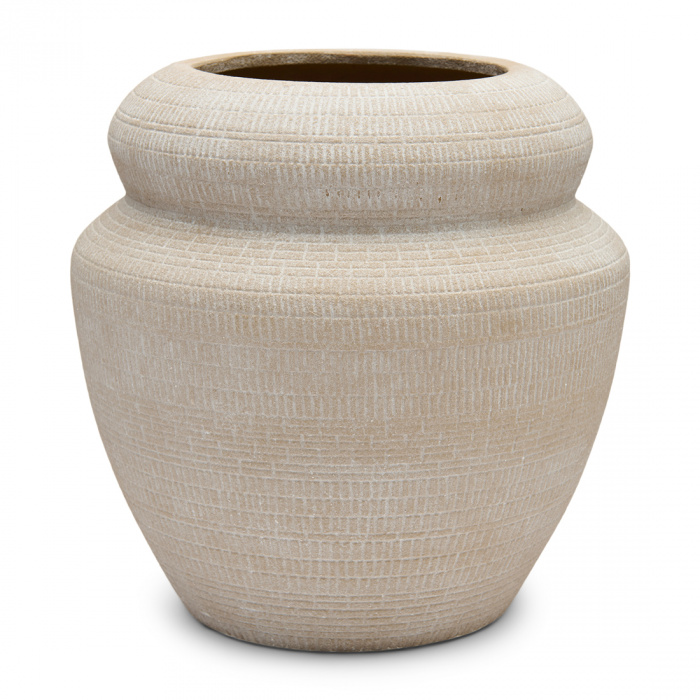 Breng een vleugje rustieke elegantie in je interieur met de Porlezza vaas. De mooie vorm en de lichte structuur maken deze grote vaas van keramiek en stoneware een tijdloos statementstuk. Perfect om je favoriete bloemen in te presenteren of als opvallend decoratief element.